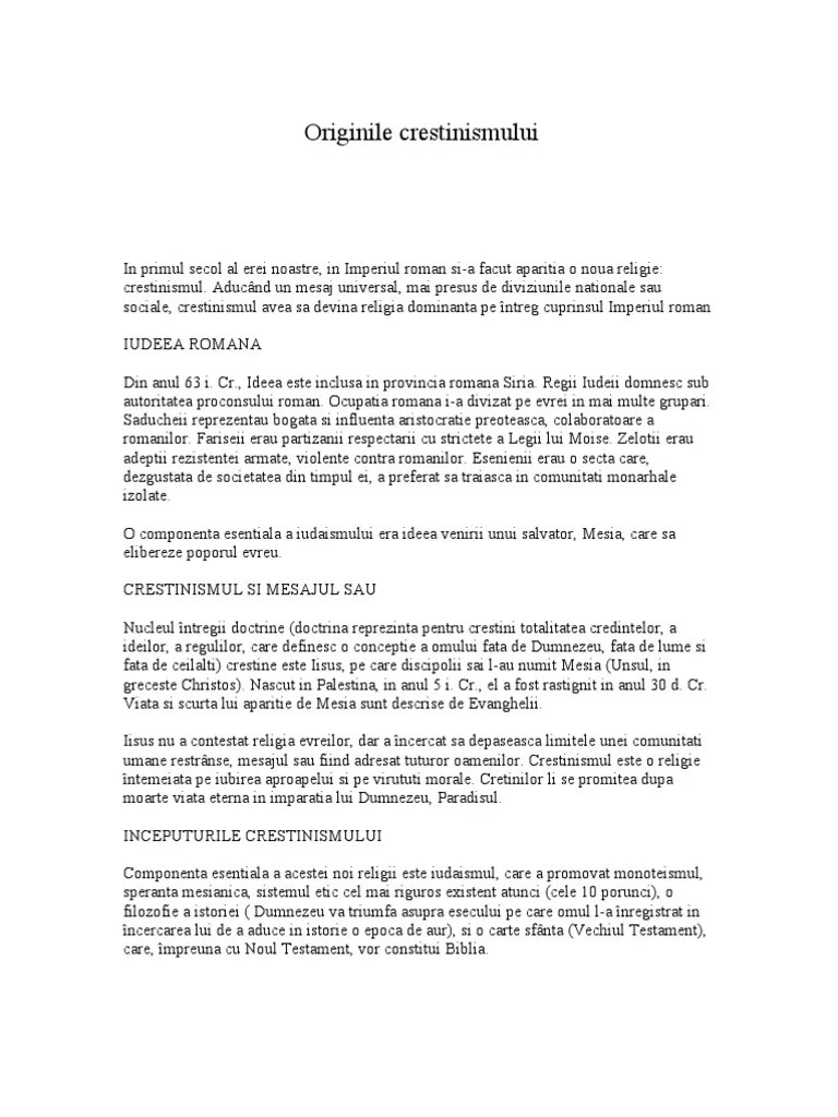 04.01.2014 · media 10 din 3 voturi... După două secole, noua religie cuprinsese toate regiunile... Creştinismul a fost întemeiat pe jertfă, şi jertfa supremă a fost mesia, în persoana umană a lui isus hristos, mântuitorul, ca exemplu pentru toate veacurile până la sfârşitul lumii.