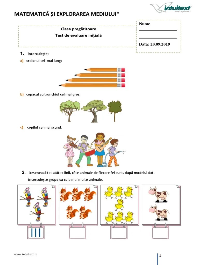Documentul pdf este un test de evaluare inițială la mem, la clasa pregătitoare. Let me know if this resource is updated. Exercitii atractive pentru testarea cunostintelor la intrarea elevilor in clasa pregatitoare