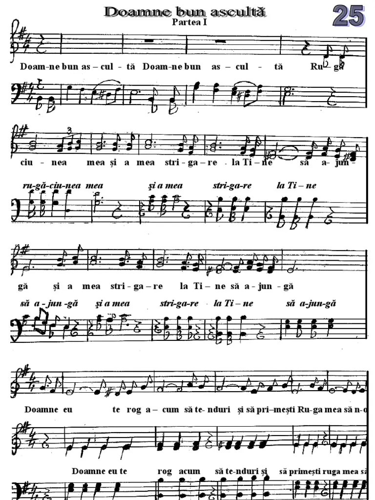 Ascultă cererea mea, întru credincioşia ta. Ascultă cererea mea, întru credincioşia ta. Doamne al puterilor, fii cu noi! Mâhnit e duhul în mine şi inima mea … Vrăjmaşul prigoneşte sufletul meu şi viaţa mea o calcă în picioare;