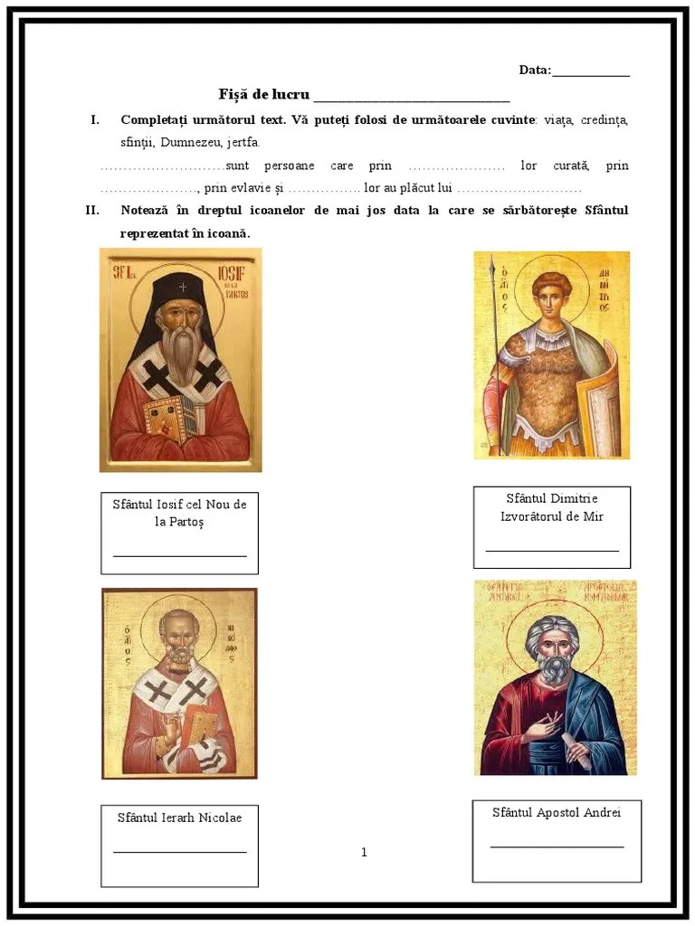 Cea mai mare bază online de materiale didactice. Copiii vor trebui să coloreze elementele create de dumnezeu, să unească punctele și să rezolve labirintul. Fise de lucru pentru clasele v_viii. Dumnezeu este cu noi prin descoperire şi iubire cuprins manuale digitale programa școlară modalități de exemplificare a elementelor de conținut lista elementelor de conținut este completată cu un ansamblu de elemente de tip predominant confesional (rugăciuni, texte biblice, cântări religioase și colinde), recomandate a fi. /materiale didactice/clasa pregătitoare tema majoră: Cea mai mare bază online de materiale didactice. March 29, 2009, 09:12:45 pm ». Planuri de lecţie, planificări, teste etc. Are si barem de corectare.. Fișă de recapitulare pentru prima unitate de învățare la clasa pregătitoare.